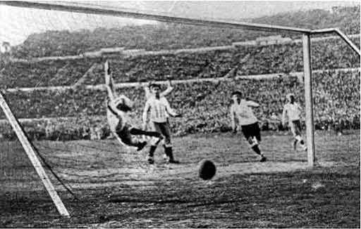 Corría el 30 de Julio cuando, en una tarde de nervios, los argentinos se adelantaban a los favoritos. Descanso. A la salida de los vestuarios, los celestes despertaron y, después de marcar 3 goles e ir por delante surgió la polémica. El árbitro pitó el final a falta de 10 minutos. El escándalo estaba servido cuando Jules Rimet, director de la Fifa, se interpuso en él y mandó reanudar el partido. A pesar de eso, ya estaba todo decidido y Uruguay se hacía con el primer Mundial de Fútbol.